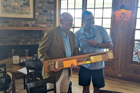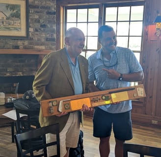 The group dinner on Tuesday night at Frank's Outback and Bar in Pawley's Island was an opportunity for the group to acknowledge and celebrate the last of the OG Founders, Gus Mast (6-time SGO Champion) who had to drop out of this year's SGO, and Brian Chollar who participated in his last SGO. We will miss Gus' always good attitude and fun, and Brian's good-natured play and hard work over the years organizing the SGO. Thanks to Gus and Brian for the years they have shared with all of us, and wish them well going forward and hope our paths cross again.